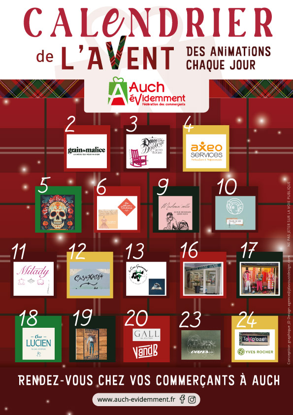 Ça bouge toute l’année à Auch. Que ce soient des événements et animations organisés par la Mairie d’Auch ou les associations auscitaines, il nous parait important que les commerçants et artisans devancent ces actualités pour les soutenir et les accompagner à travers leurs offres, leurs thématiques vitrines, leurs relais communication… Voici quelques dates phares à retenir.